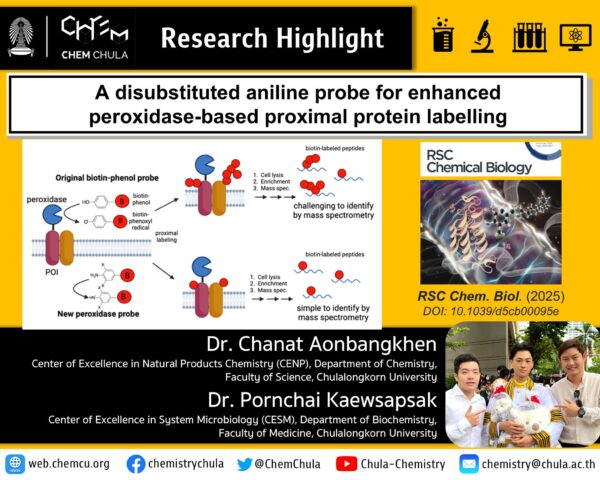 A disubstituted aniline probe for enhanced peroxidase-based proximal protein labelling -  Proteins are biomolecules essential for cellular functions, including cell signaling and regulation. Protein misfolding or mislocalisation can result in various diseases. Peroxidase-mediated proximity labelling has emerged as a powerful tool for studying subcellular proteome and protein–protein interactions. However, the traditional probe, biotin-phenol, suffers from limitations including low protein enrichment efficiency,… …A disubstituted aniline probe for enhanced peroxidase-based proximal protein labelling Read More »