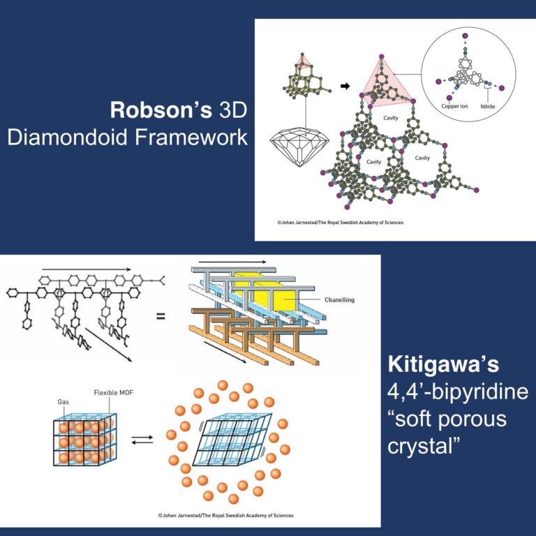 ศาสตราจารย์ซูซูมุ คิตางาวะ (Susumu Kitagawa) จากประเทศญี่ปุ่น และ ศาสตราจารย์โอมาร์ ยากี (Omar M. Yaghi) จากประเทศสหรัฐอเมริกา ทั้งสามคือผู้บุกเบิกการสร้างวัสดุที่เรียกว่า โครงข่ายโลหะอินทรีย์ (Metal–Organic Frameworks หรือ MOFs) วัสดุเหล่านี้คือผลึกระดับนาโนที่มี “ห้อง” หรือช่องว่างขนาดเล็กมหาศาลภายในหนึ่งหน่วยผลึก และห้องเล็ก ๆ เหล่านี้เองที่กำลังเปลี่ยนอนาคตของโลก — ตั้งแต่การดักจับคาร์บอนไดออกไซด์ การสกัดน้ำจากอากาศ ไปจนถึงการเก็บพลังงานไฮโดรเจน