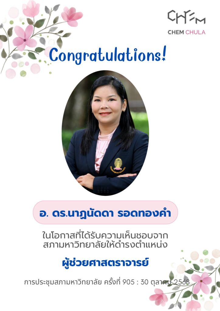 ภาควิชาเคมีขอแสดงความยินดีกับ อ. ดร.นาฏนัดดา รอดทองคำ ท …